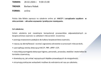 Głównym celem projektu jest budowanie przewagi konkurencyjnej i promocji branży poprzez podnoszenie kwalifikacji uczestników rynku sektora mleczarskiego dzięki organizacji konferencji i szkoleń, stacjonarnie lub on-line. Projekt sfinansowany jest z Funduszu Promocji Mleka.