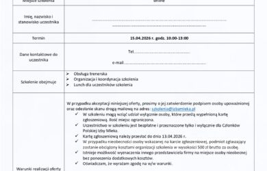 Polska Izba Mleka zaprasza na bezpłatne szkolenie pt. Audyt i odświeżenie