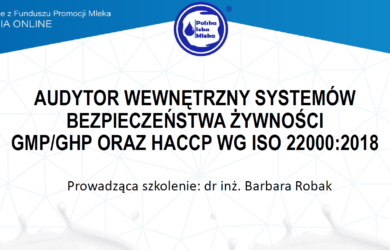 Szkolenie online pt. AUDYTOR WEWNĘTRZNY SYSTEMÓW BEZPIECZEŃSTWA ŻYWNOŚCI GMP/GHP ORAZ