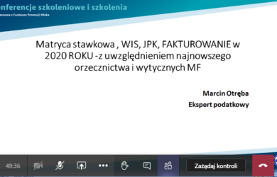 W dniu dzisiejszym tj. 20.08.2020 r. odbywa się szkolenie online pt. Nowa matryca stawek VAT 2020 -