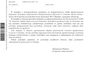 Do Biura Polskiej Izby Mleka wpłynęło pismo Zastępcy Głównego Lekarza Weterynarii z dnia 3 kwietnia 2020 r.