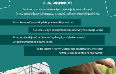 Na prośbę Instytutu Gospodarki Rolnej przekazujemy Państwu informację o ofercie studiów podyplomowych. Studia są dla osób, które: