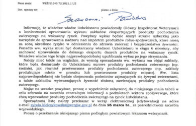 Poniżej pismo z GIW oraz link do pliku: Lista zakładów do Uzbekistanu