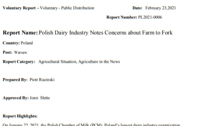 Departament Rolnictwa Stanów Zjednoczonych (USDA) opublikował informację na temat organizowanej przez Polską Izbę Mleka w dniu 22.02.2021
