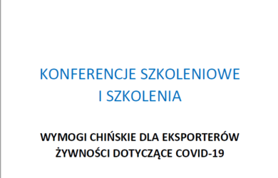 Zaproszenie na szkolenie pt. Wymogi chińskie dla eksporterów żywności dotyczące