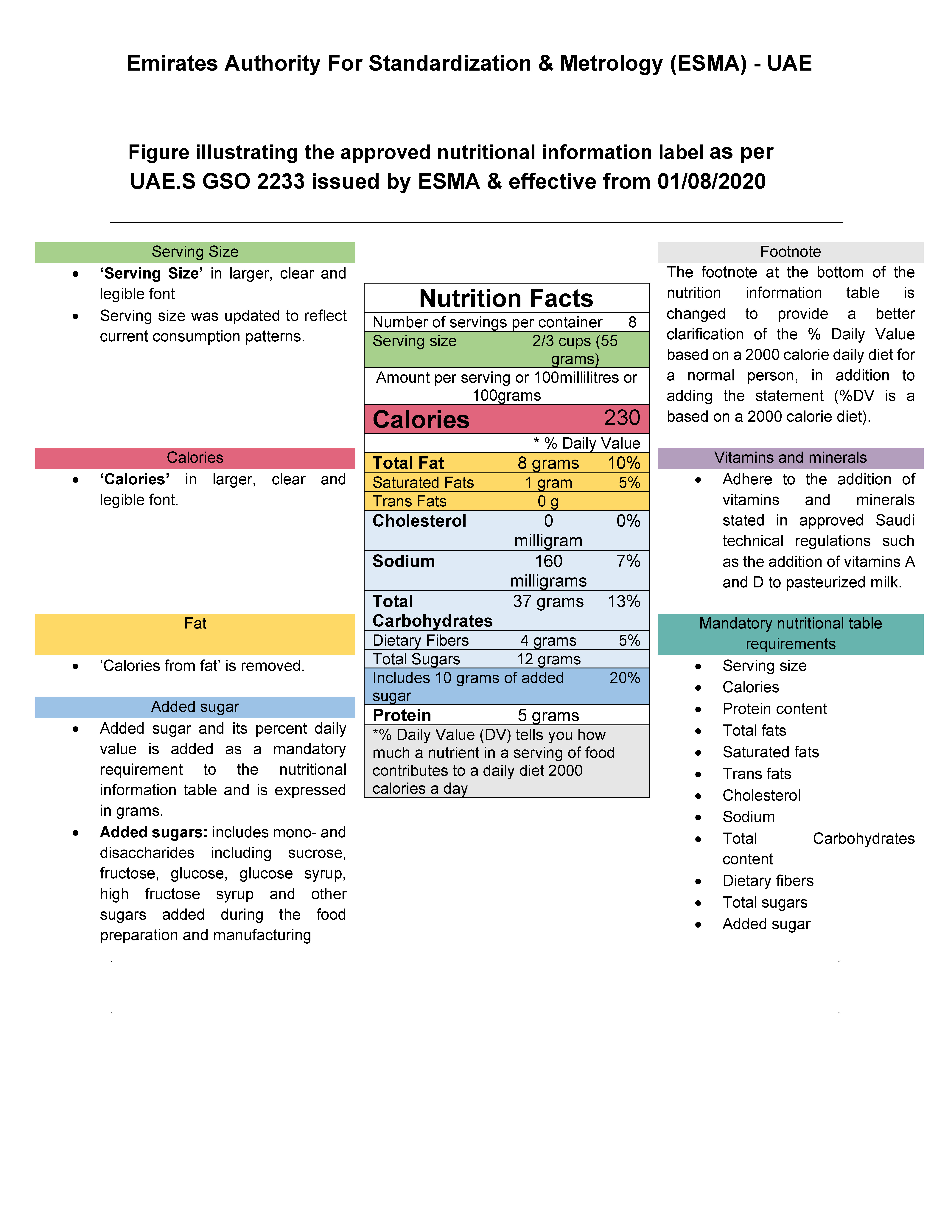 GIW informuje, że władze Zjednoczonych Emiratów Arabskich za pośrednictwem Ambasady RP w Abu Zabi powiadomiły, iż nowa wersja standardu UAE.S 2233/2019 dot. wymaganych informacji na etykietach produktów spożywczych w zakresie wartości odżywczych zacznie obowiązywać od dnia 1 sierpnia br.