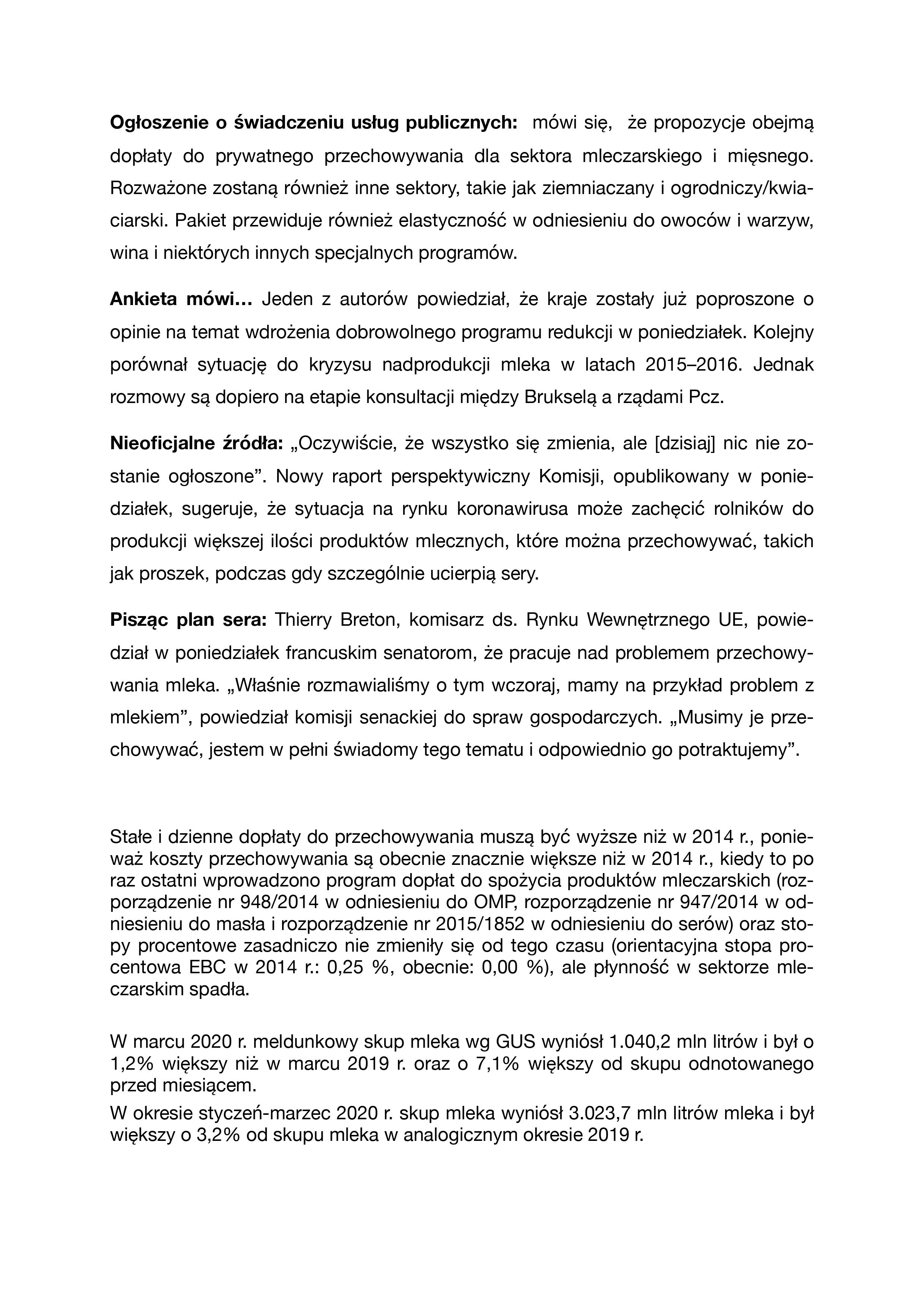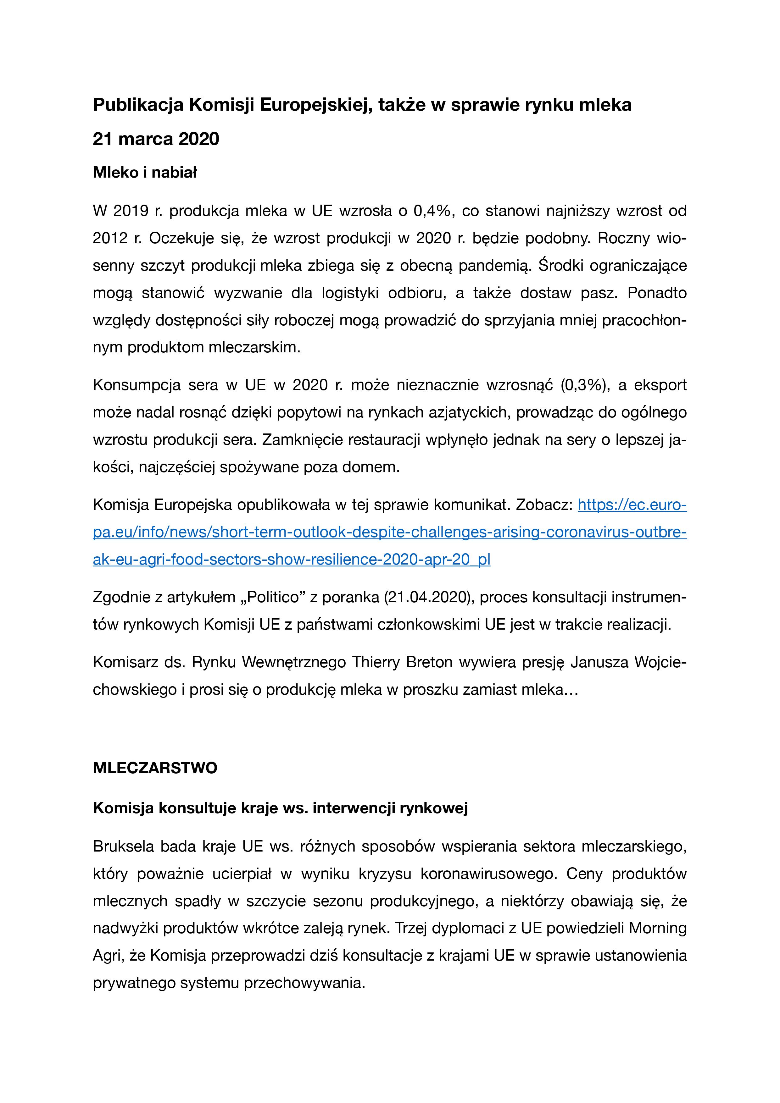 Publikacja Komisji Europejskiej, także w sprawie rynku mleka