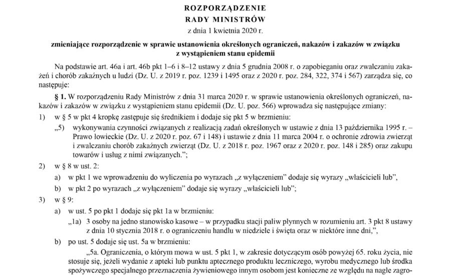 Zachęcamy do zapoznania się z Rozporządzeniem Rady Ministrów zmieniającym rozporządzenie w sprawie ustanowienia określonych ograniczeń, nakazów i zakazów w związku z wystąpieniem stanu epidemi.