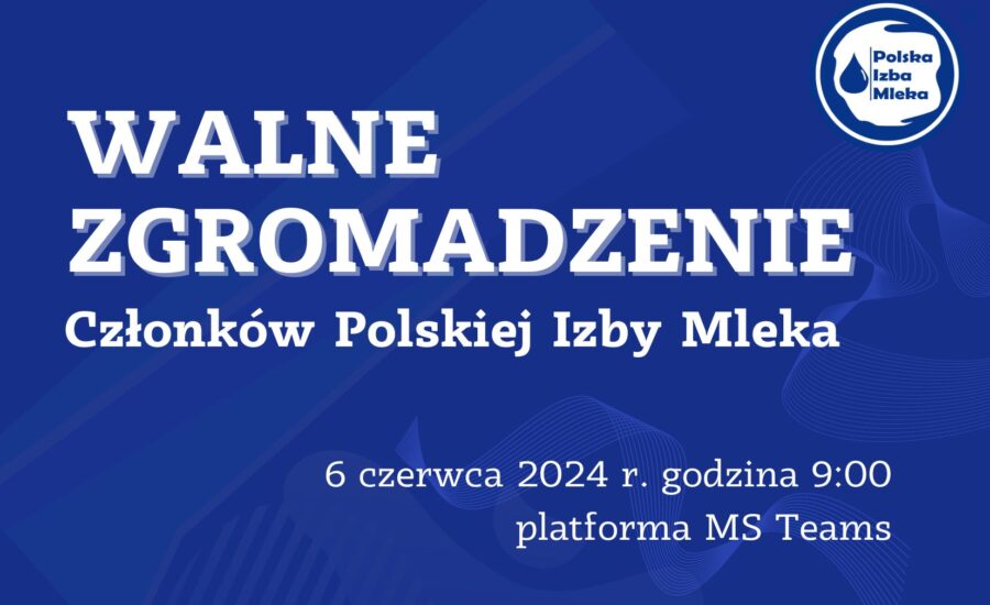 Zapraszamy wszystkich Członków Polskiej Izby Mleka na Walne Zgromadzenie, które odbędzie się w dniu 6 czerwca 2024 r. o godzinie 9:00, przy wykorzystaniu środków komunikacji elektronicznej – platformy MS Teams (z możliwością rejestracji obrad).