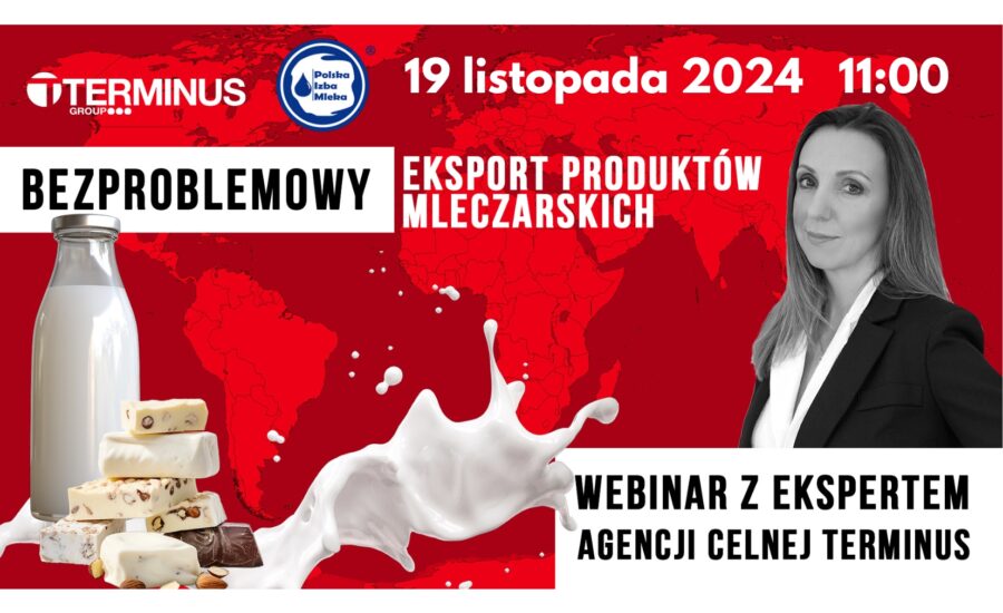 Serdecznie zapraszamy Państwa do udziału w bezpłatnym webinarze „Bezproblemowy eksport produktów mlecznych” organizowanym przez Polską Izbę Mleka przy współpracy z Agencją Celną Terminus Group.